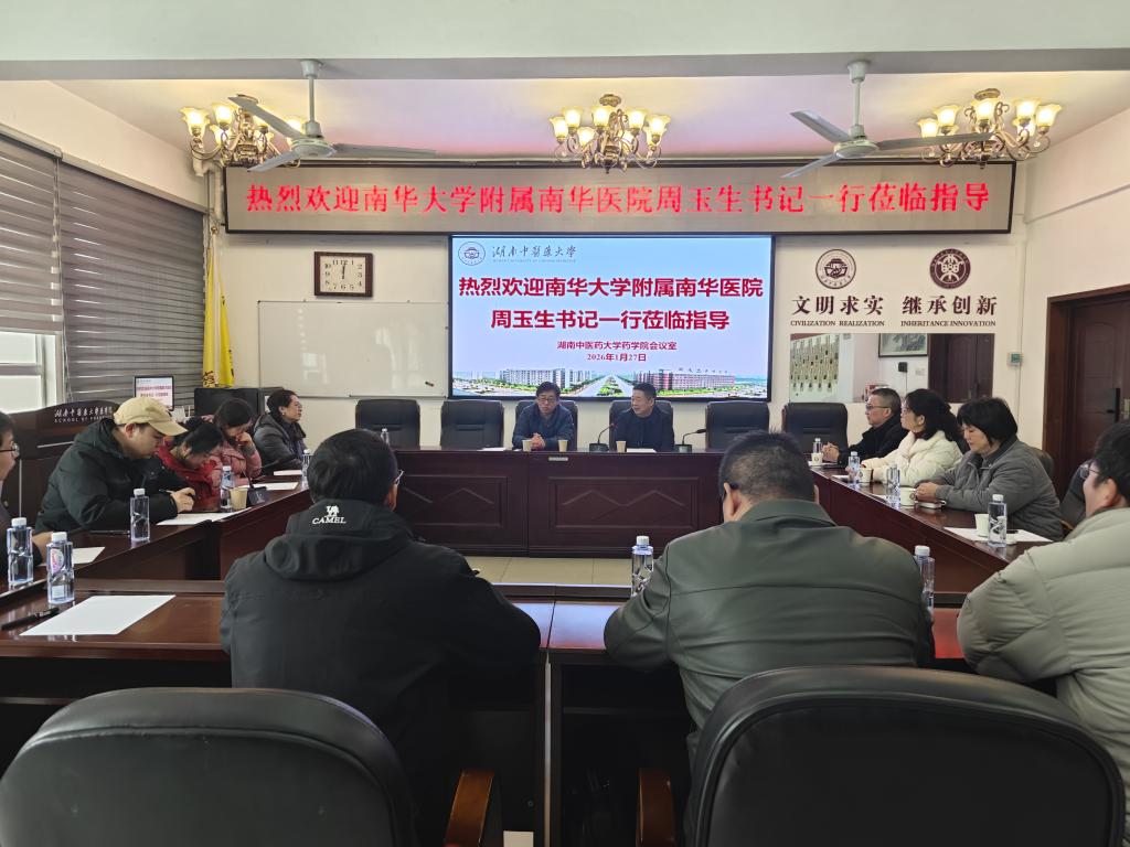 1月27日上午,南华大学附属南华医院党委书记周玉生率队到访湖南中医药大学药学院,与药学院院长、中医药民族医药国际联合实验室负责人王炜教授及实验室骨干成员开展学术交流。王炜陪同周玉生一行参观了中医药民族医药国际联合实验室,详细介绍了实验室的建设背景、研究方向、技术平台及近年来在中医药现代化、民族医药国际化方面取得的成果。周玉生对实验室的科研条件、学术氛围及创新成果表示高度赞赏,并表达了与实验室开展深...