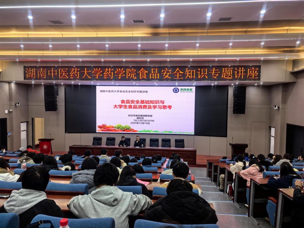为提升食品科学与工程专业学生的专业认知与实践意识,12月16日下午,我院食品科学与工程专业特邀长沙市食安委特聘专家童旺芝教授走进课堂,为全体食品科学与工程专业本科生带来了一场主题为“食品安全基础知识与大学生食品消费及学习思考”的专题讲座。药学院副院长欧阳文,食品科学与工程专业教师及全体本科生参加讲座。讲座中,童旺芝首先系统阐述了国家食品安全工作的核心方针与政策导向,强调了“预防为主、风险管理、全程...