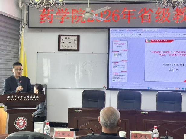 4月15日,在药学院会议室举办2026年省级教改项目申报第二轮现场打磨会。本次打磨会旨在进一步优化省级教改项目申报材料、提升申报质量,力争在2026年省级教改项目评审中取得突破。会议由药学院副院长欧阳文主持,特邀中南大学陈志刚教授、湖南中医药大学夏新华教授、易霞教授莅临指导,学院10名拟申报教师参会并汇报。会议伊始,欧阳文代表学院对三位专家的莅临指导表示热烈欢迎和衷心感谢。他强调,省级教改项目是推动学院教学...