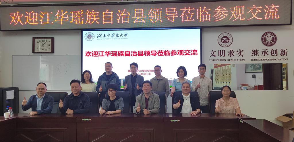4月11日,江华瑶族自治县县委常委、副县长安青,湖南贵威生物科技有限公司、湖南品六生物科技有限公司等企业领导一行到访药学院,就大健康产品开发进行研讨交流。药学院院长王炜教授与国际瑶药研究院专家、教师代表参与座谈。本次交流主要围绕江华瑶族自治县野生瑶药资保护、赋能大宗瑶药资源规模化种植、开发与基础研究(如黑老虎、五指毛桃、黄花倒水莲等),吸引企业入驻江华瑶族自治县开发道地瑶药、发展大健康产业等。王院...