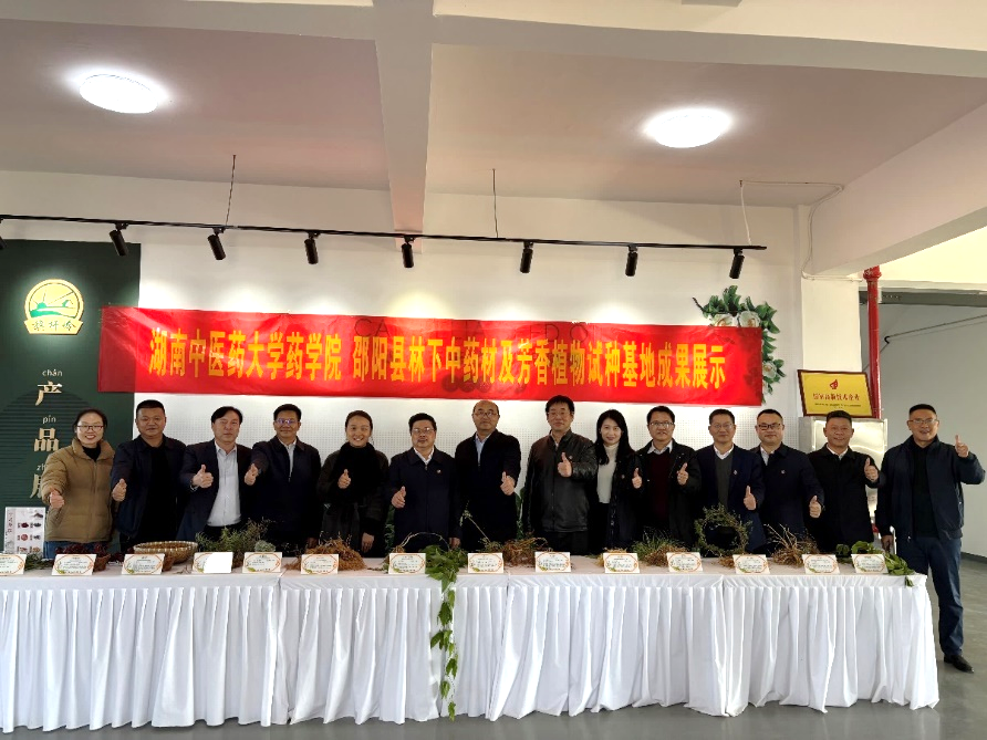 2025年11月19日,我校党委书记戴爱国率调研组赴邵阳县验收我院与邵阳县人民政府共建的“党建引领油茶林下中药材及芳香植物试种科研基地”的阶段性成果,邵阳市委副书记尚生龙、邵阳县委书记袁胜良、邵阳县县长周玉祥陪同调研。调研组成员深入基地实地考察,详细了解油茶林下中药材及芳香植物生长情况及产品开发进展,现场评估中药材及芳香植物的产量与品质,亲身体验衍生产品。座谈会上,药学院院长王炜汇报了基地阶段性工作成...