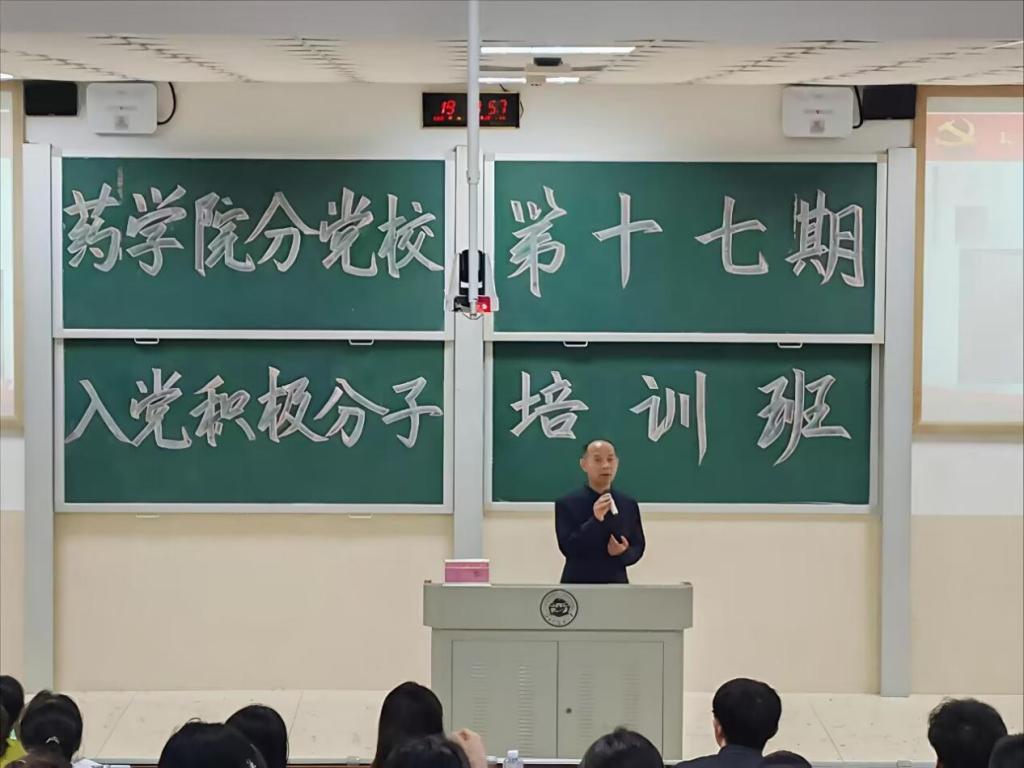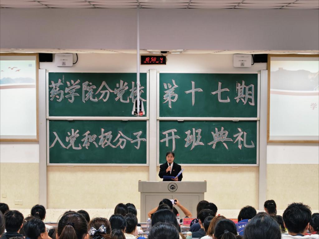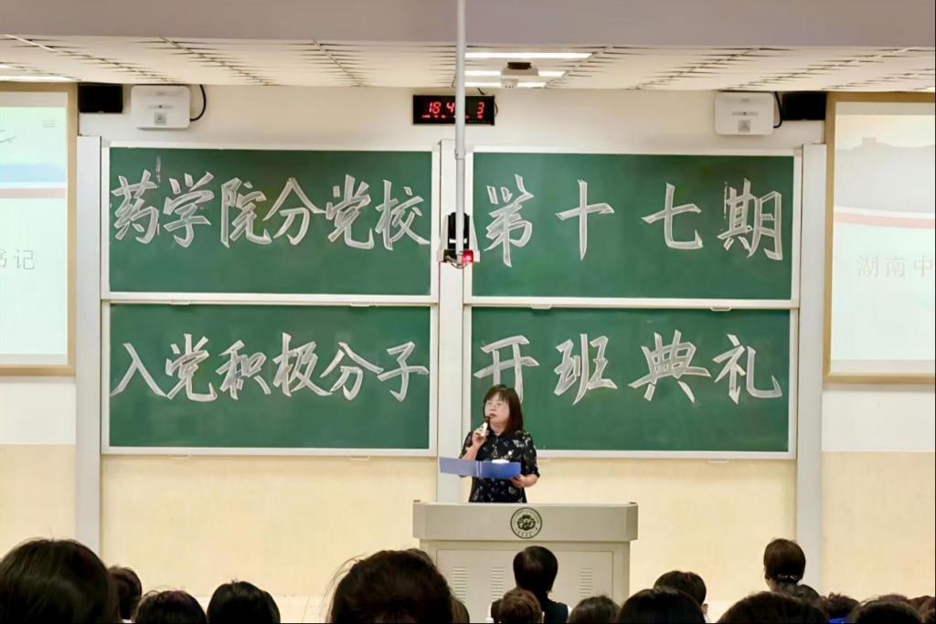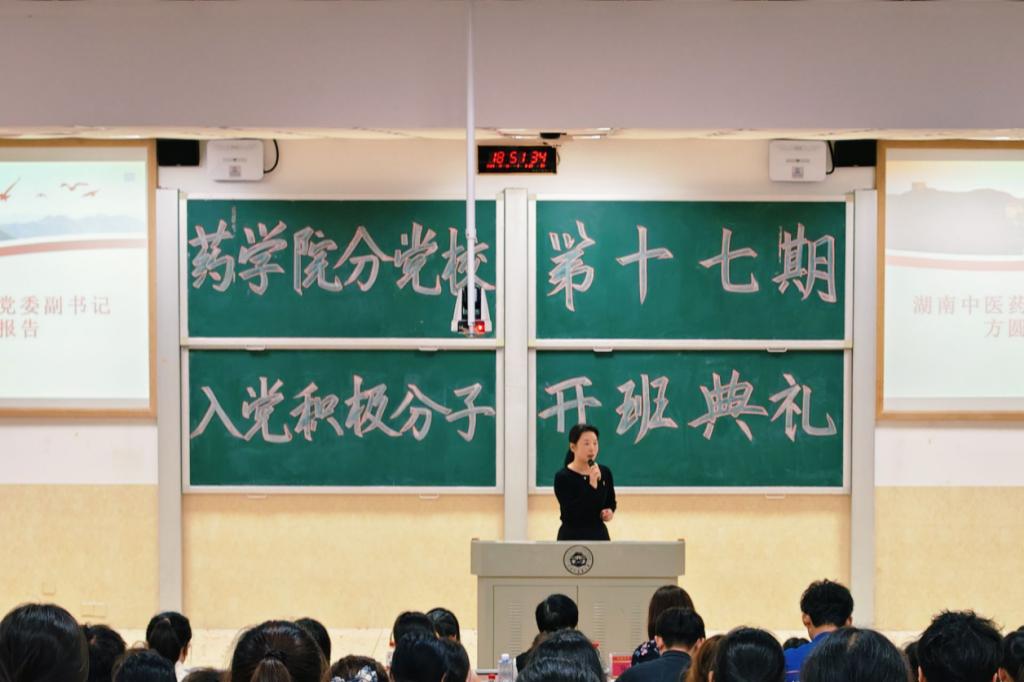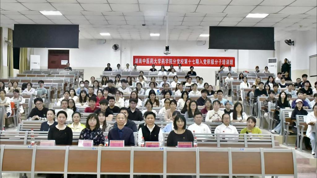 2025年10月13日18:30,中共湖南中医药大学药学院分党校第十七期入党积极分子培训班开班典礼于济世楼316教室举行。湖南中医药大学党委委员、副校长廖菁,湖南中医药大学药学院党委书记张熙,湖南中医药大学药学院党委副书记方圆,湖南中医药大学药学院组织员向宇、郑淘以及学生科全体辅导员,药学院第十七期入党积极分子参加了本次开班典礼。