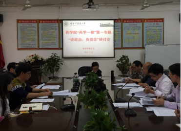 鲁耀邦在发言中指出,“讲政治,有信念”是中国共产党治党治国法宝,具体到我们个人身上,就是言论言行与党中央、省委、大学党委保持高度一致,以药学院发展为核心,齐心协力推动药学院的内涵建设。