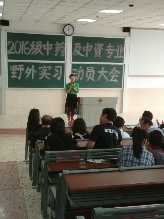 2018年5月29日中午12:30,湖南中医药大学药学院2016级中药学及中药资源与开发专业野外实习动员大会在3216教室正式开始。药学院党委副书记、副院长刘向前教授,药学院副院长裴刚教授,中药资源与开发教研室主任周日宝教授,药学院学生科科长王颖斌老师,科教科郑淘老师以及本次野外实习带教老师出席本次会议。