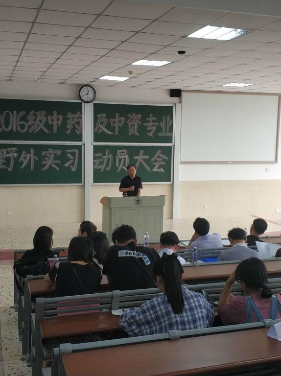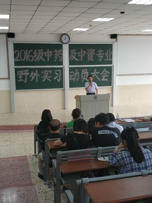 药学院党委副书记、副院长刘向前教授首先解读了本次野外实习的目的和野外实习的重要意义。然后强调每个实习生必须遵守实习纪律,听从指导老师安排,不能擅自单独行动,要注意人身和财产安全。指出同学们在实习期间应以学习为重,积极进取,增强集体荣誉感,在实习期间团结协作,相互帮助,相互支持,把所学理论知识与实践相结合,圆满完成实习任务。