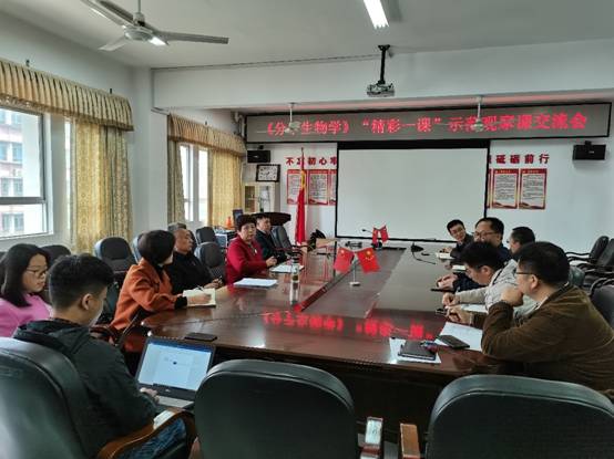 当天中午利用休息时间,生物工程教研室组织听课成员在学院会议室召开了《分子生物学》 “精彩一课”示范观摩课与交流会。交流会上,孟蕾老师的授课风格受到高度评价,被前辈潘清平教授总结为“孟蕾风”教学,其幽默的语言、从容的教态、妙趣横生的比喻将枯燥难懂的《分子生物学》活灵活现的展现在学生们眼前。