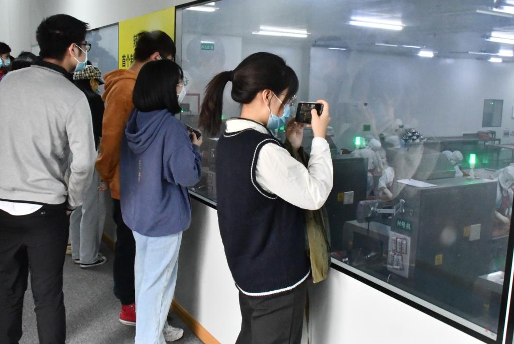 同学们对辣条的生产进行参观