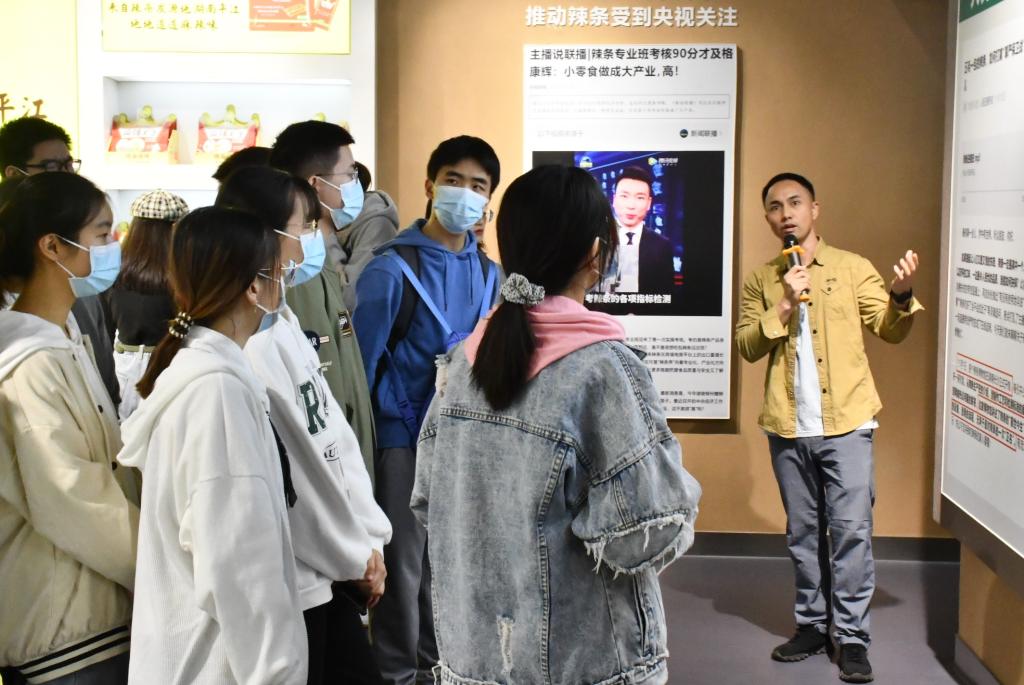 活动伊始,老师和同学们紧跟麻辣王子品牌主管陈玄武的步伐,先是前往麻辣王子博物馆进行参观。在麻辣王子博物馆中,同学们一起跟随麻辣王子行政副总经理李满良去探索麻辣王子辣条的发展历程;同时,在他的详细讲解下,同学们也明白了麻辣王子的使命“传承正宗辣条麻辣味,推进辣条天然健康”。紧接着,同学们在工作人员的带领下,进入GMP洁净车间,参观辣条的生产过程,也见识到了工人们工作流程的严谨。然后,麻辣王子品牌主管陈玄武组织同学们开展游戏,以此提高同学们的参与积极性,也让同学们亲身去感受属于麻辣王子的风味。活动的最后,麻辣王子行政副总经理李满良结合PPT和视频,向同学们生动形象地进行了辣条的科普;同时,也就同学们的问题做出了详细的回答。