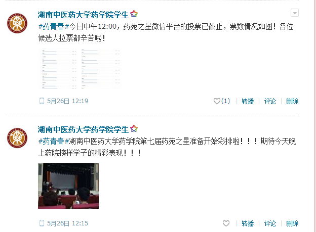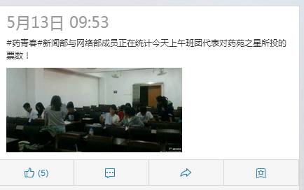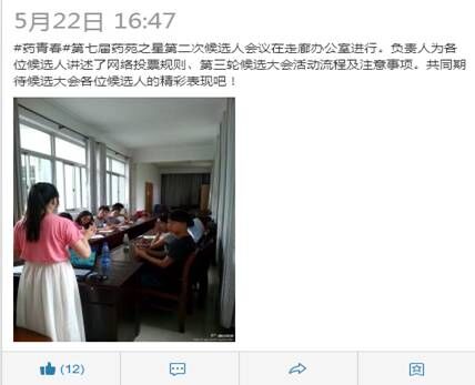 5月23日开始至5月26日中午,进行微信平台投票,由于微信平台仍为认证期间,消息不能正常推送,所以投票方式比较麻烦,并且本次微信平台投票时间过长,有很多候选人反映,“没必要”。