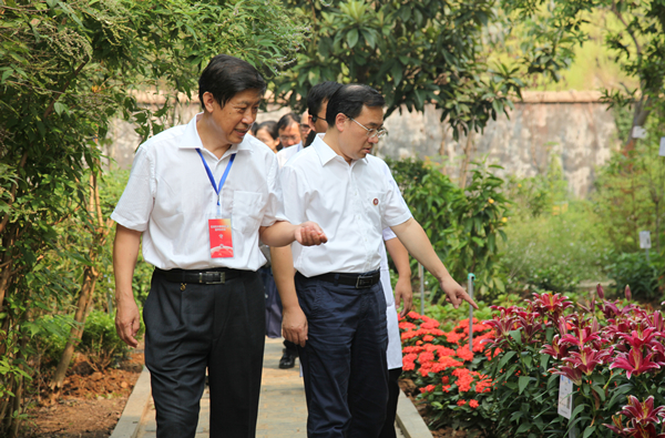 专家组一行参观药用植物园