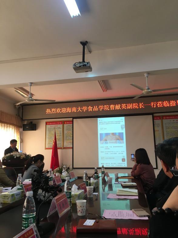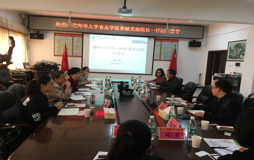 11月23日,海南大学食品学院副院长曹献英教授一行来我校就翻转课堂等云课程建设工作进行调研。我校教务处处长李铁浪,药学院副院长夏新华等相关领导接待了曹献英院长一行,双方在药学院会议室召开了交流座谈会。药学院食品科学与工程专业主要负责人,以及部分青年老师参会。