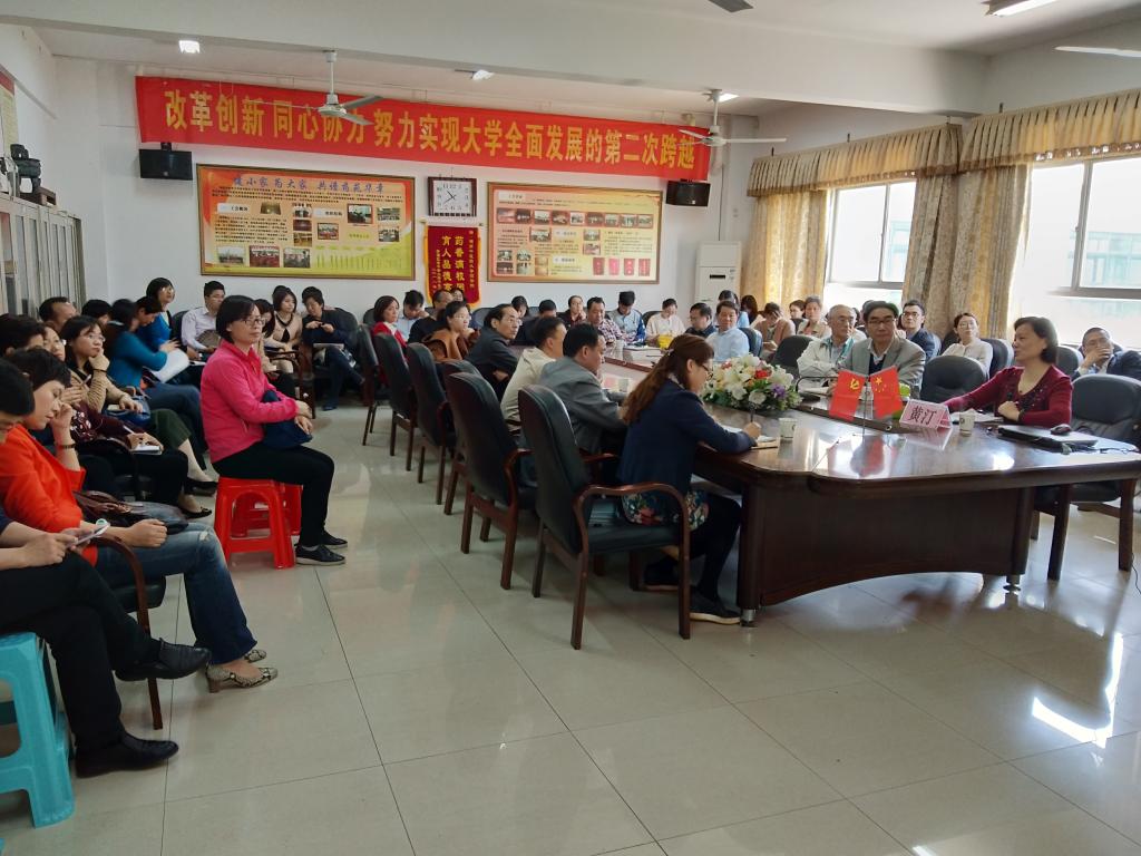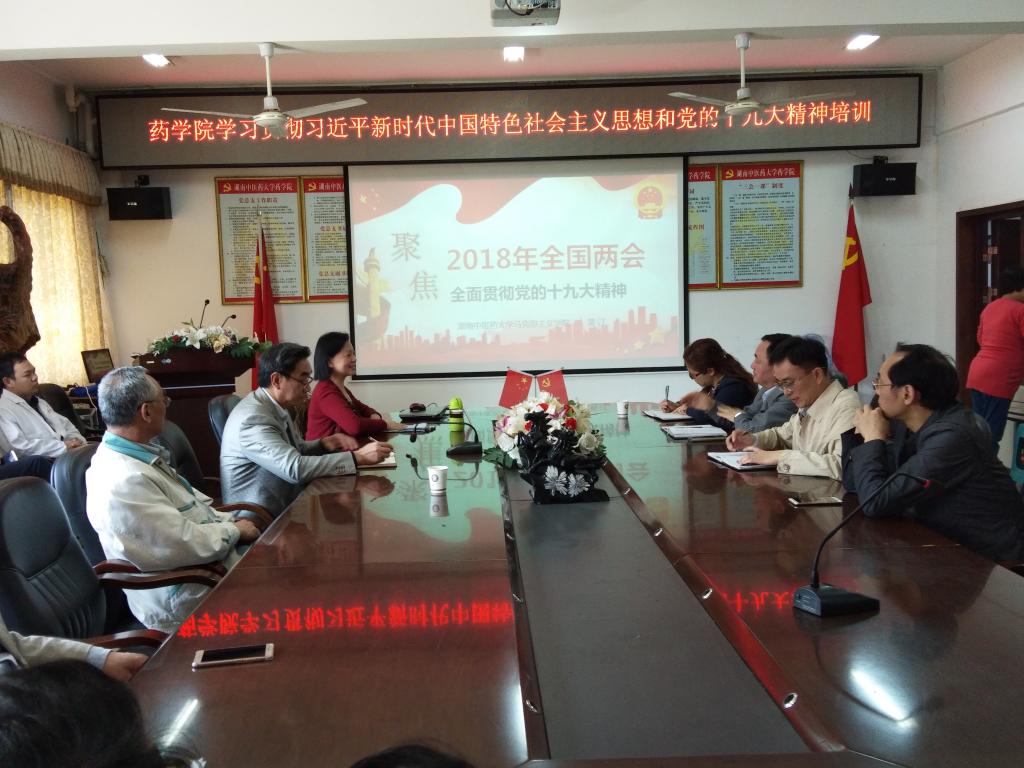 4月17日上午,药学院邀请马克思主义学院副院长黄汀教授在药学院会议室作全国“两会”精神的专题辅导报告,会议由药学院党委书记张秋雁主持,药学院科以上干部和党员教师参加报告会。