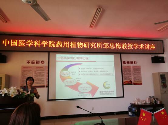 2019年3月29日下午,中国医学科学院北京协和医学院药用植物研究所天然药物化学研究中心常务副主任,研究员,二级教授,博士生导师,“新世纪百千万人才工程”国家级人选,享受国务院政府特殊津贴专家,国家药典委员会委员邹忠梅教授应药学院夏新华副院长邀请来到湖南中医药大学进行了主题为“‘国家中药化合物库’建设与创新药物研究”的学术讲座。湖南省中药活性物质筛选工程技术研究中心主任李顺祥教授主持讲座,天然药物化学教研室主任陈胜璜教授,药剂教研室主任贺福元教授等50多位师生共同参加了讲座交流。邹忠梅教授介绍了其创新药物研究的进展及成果,并就“国家中药化合物库”的发展与应用与我校师生展开了探讨,为我校师生的科研工作提供了新的思路和方向。