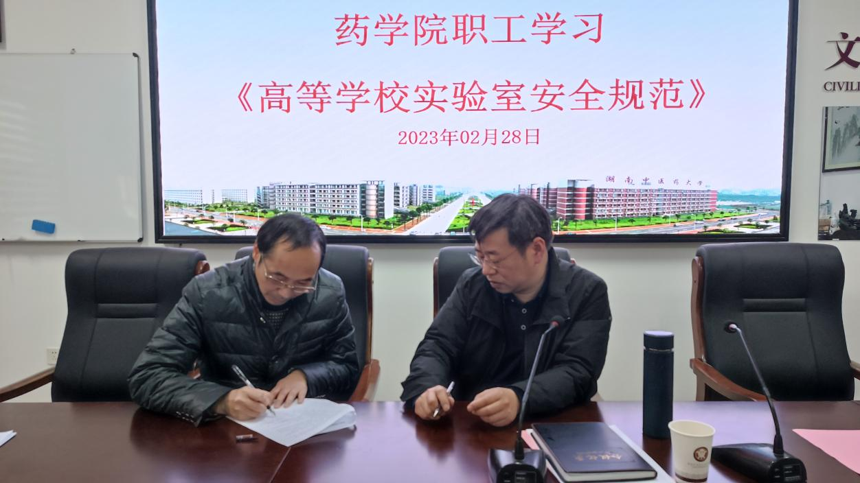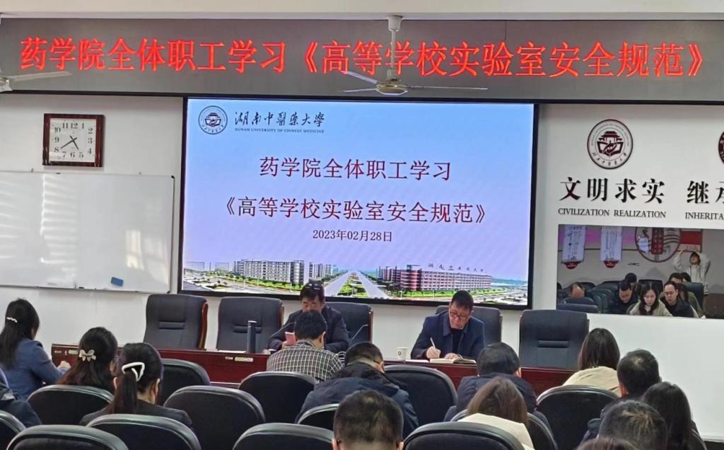 为有效防范和消除实验室安全隐患,最大限度减少实验室安全事故,保证教学、科研任务有序展开,保障校园安全、师生生命安全和学校财产安全,2月28日下午,药学院在学院会议室开展了2023年春季实验室准备及安全专题会议。会上,王炜院长传达了教育部办公厅印发的《高等学校实验室安全规范》(教科信厅函[2023]5号)文件精神,并一再强调实验室安全的重要性,要求各实验室负责人严把实验室安全关,做好实验室安全检查和实验室日常管理,杜绝实验室安全隐患。
