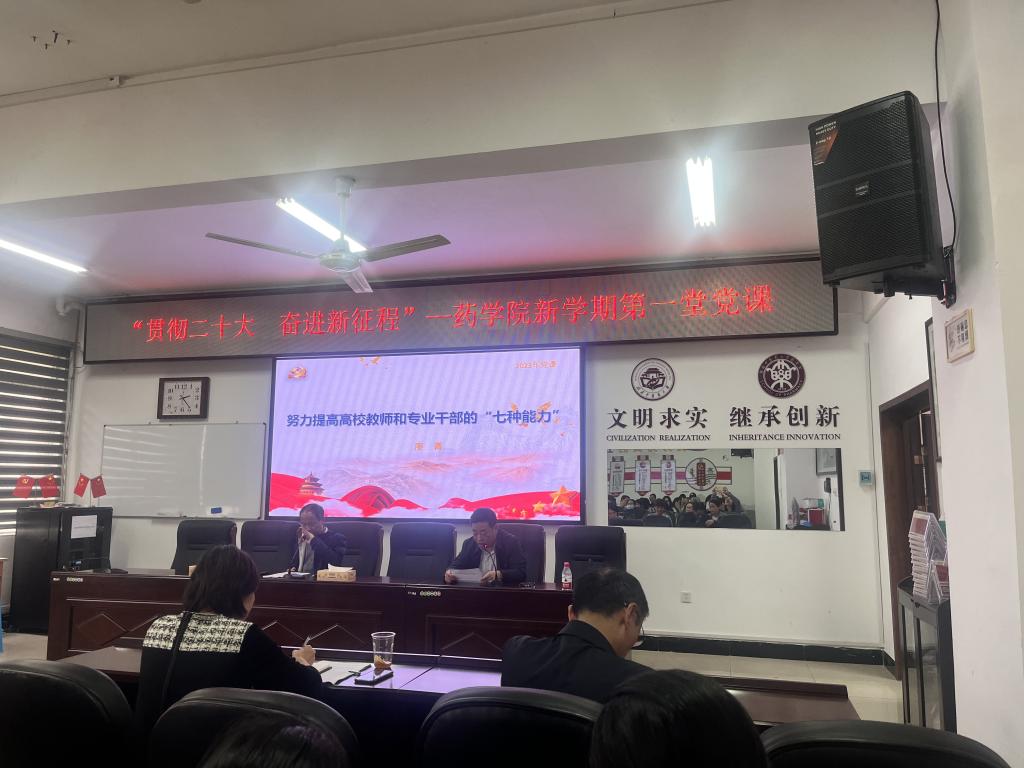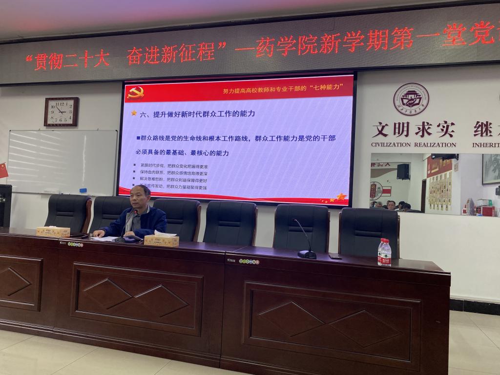 4月11日星期二下午,为了响应省委教育工委《关于开展全市高校“新学期第一堂党课”活动的通知》的号召,药学院第一职工党支部邀请廖菁副校长在药学院会议室给全院职工党员开讲新学期第一堂党课,本次党课由王炜院长主持。