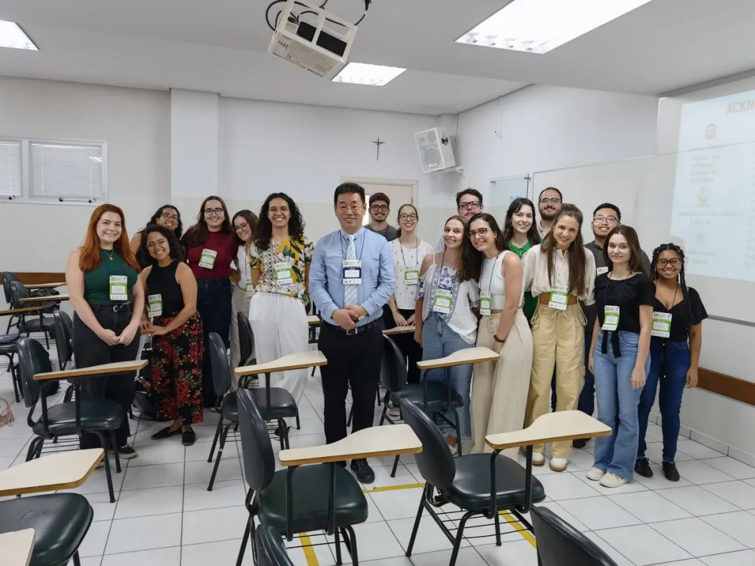在此次会议期间,王炜教授还为巴西学生进行了《天然药物化学》课堂教学,以传统中医药传承与创新为切入点,对天然药物化学专业内容进行了讲解,开阔了巴西学生的专业视野,反响极佳。这是中国与巴西文化之间的碰撞,同时也是我校《天然药物化学》课程教学改革的一次创新与实践。