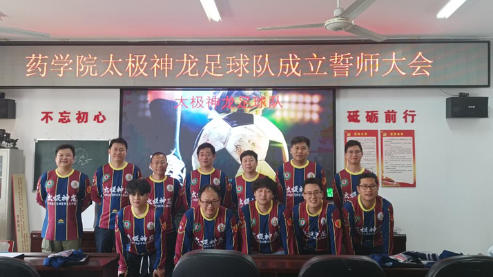 (肖作为供稿)为进一步提升教职工身体素质,增进交流,药学院分工会成立太极神龙足球队。球队成立大会5月17日下午在药学院会议室举行,会议由药学院王炜副院长主持,全体队员参与成立大会。