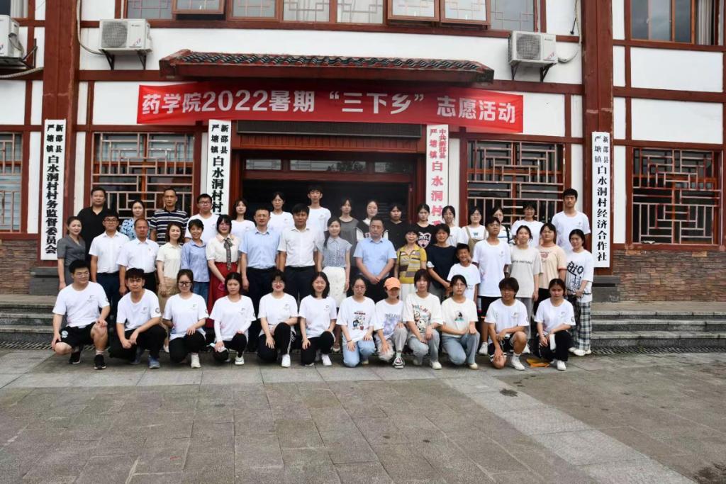 2022年7月8日上午,湖南中医药大学药学院2022年暑期“三下乡”社会实践活动在新邵县严塘镇白水洞村启动。湖南中医药大学药学院党委副书记杨岩涛、共青团邵阳市委副书记刘梦融等领导嘉宾参加启动仪式。
