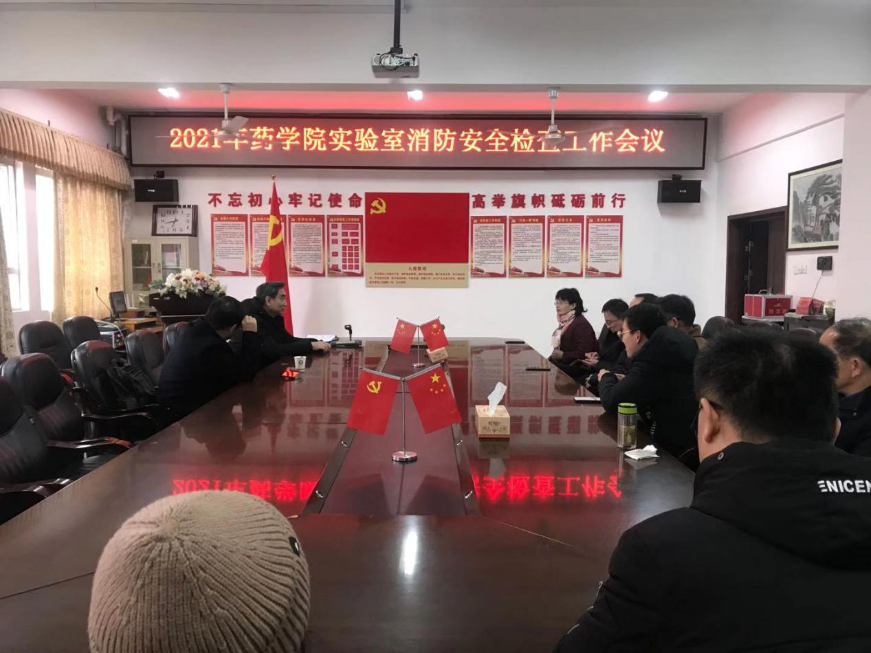 为进一步推进我院实验室安全管理工作的顺利开展,确保广大师生教学及科研工作的有序进行,1月21日上午10:00,药学院于会议室召开实验室消防安全工作检查会议,药学院书记曹一瑜、院长夏新华、副院长裴刚、王炜及药学院实验室有关部门负责人员参与此次会议,会议由院长夏新华主持。