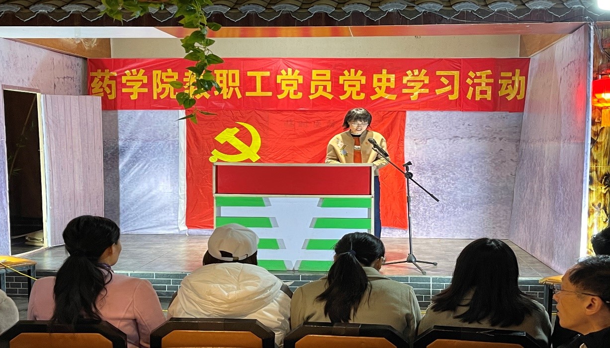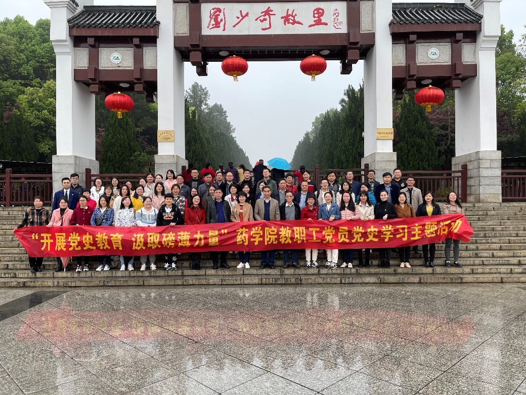 在药学院党委书记曹一瑜同志的领誓下,党员们高举右手,面对党旗庄严宣誓。在刘少奇同志纪念馆,刘少奇同志故居,药学院全体党员端详历史照片、文物、遗物等,实地感受刘少奇同志曾经学习生活过的场景,深切缅怀刘少奇同志为党和人民事业建立的不朽功勋,追思他为民族独立和人民解放,国家富强和人民幸福不懈奋斗的光辉历程。