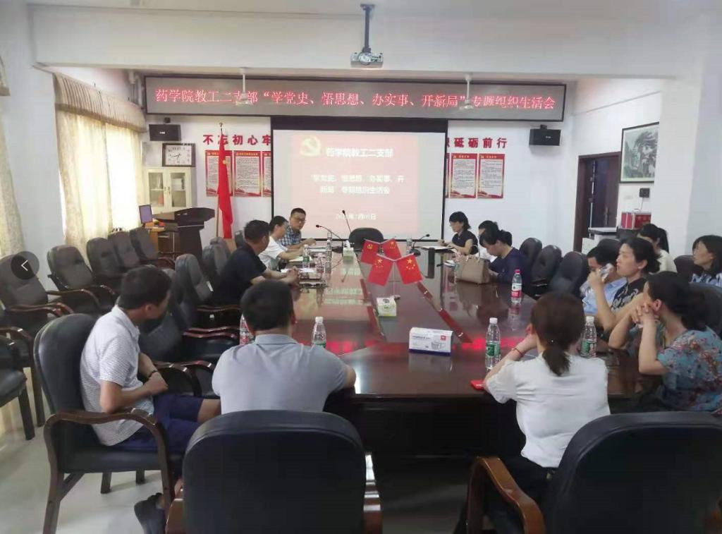 7月9日下午,药学院职工第二支部召开“学党史、悟思想、办实事、开新局”专题组织生活会,药学院党委书记曹一瑜以普通党员身份参加党支部组织生活会,并邀请药学院副院长裴刚参加生活会。