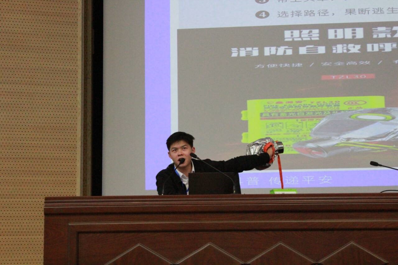 本次消防知识讲座于当日12:30在三教报告厅举行。来自湘安消防公益服务中心的曹文强先生围绕三个方面为大家进行了细致的讲解。曹文强先生用通俗的例子,辅以精简的视频,为大家阐述了火灾的隐患。在桩桩令人悲痛的故事中,同学们明白了切忌超负荷用电的道理。在灭火、逃生教学中,曹文强先生向同学们介绍了灭火器和防毒面具的使用方法,并提出了“小火灭,大火跑”的原则,鼓励同学们用冷静的态度来面对火灾,抵御火灾。