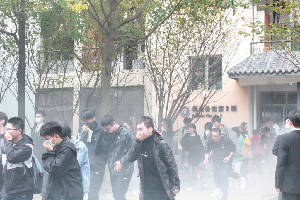 消防知识讲座结束后,消防安全演习在三栋学生公寓展开。药学院党委委员杨岩涛老师、药学院学生科科长王颖斌老师、药学院学生科周萍老师参与此次演习。伴随着警报声,同学们用湿毛巾掩住口鼻,按照逃生路线,弯腰穿过阵阵浓烟,有序撤出寝室楼。整个消防演习在工作人员的组织下有条不紊地进行着。演习结束后,学校保卫科朱策老师向在场师生展示了灭火器的操作方法。杨岩涛老师使用灭火器的正确行为,为在场老师与同学作出了良好示范。
