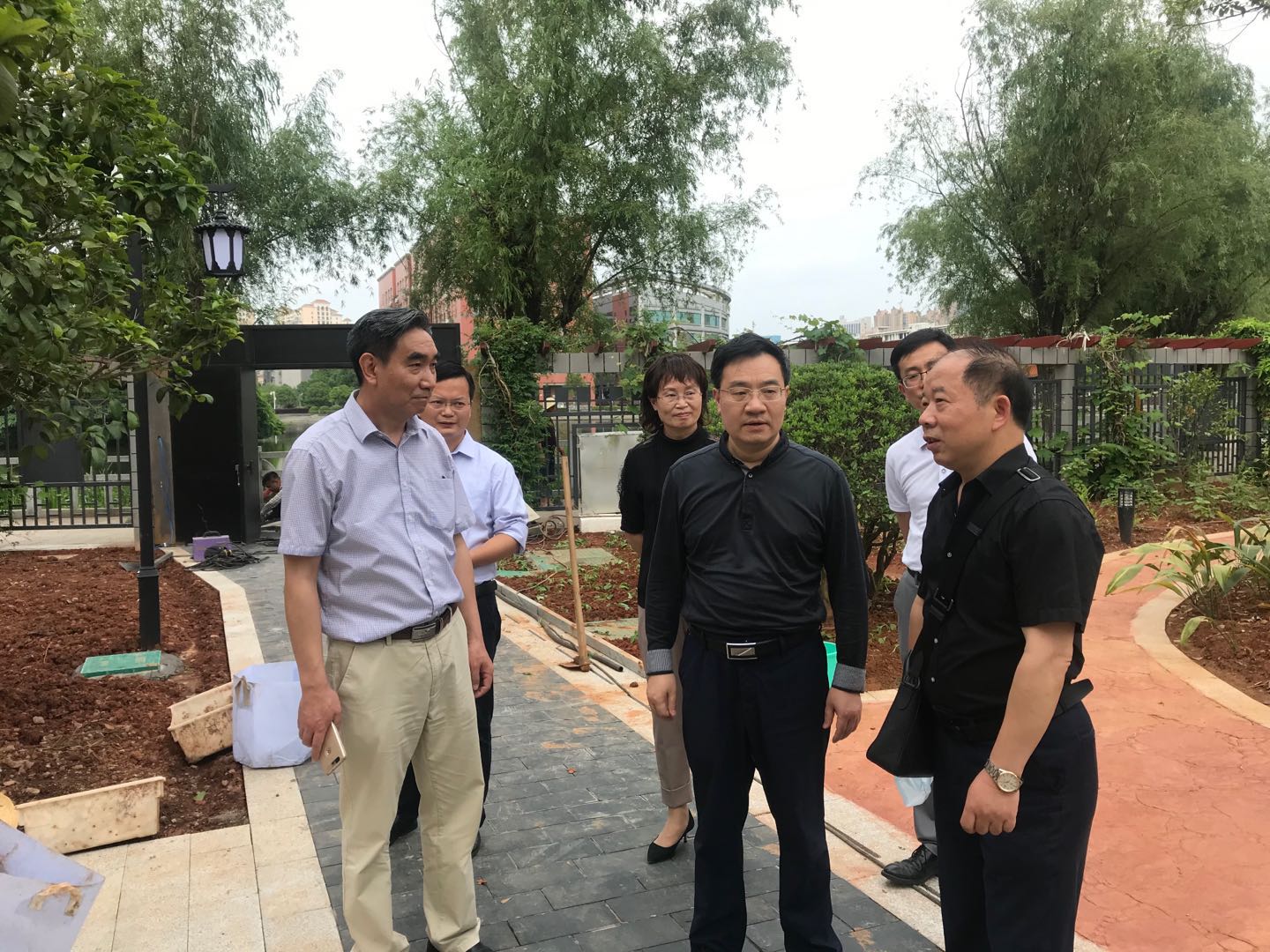 2020年5月26日下午,校(院)党委书记秦裕辉在发展改革处、药学院等部门负责人及项目施工单位代表陪同下,实地巡查了药用植物园提质改造工程。