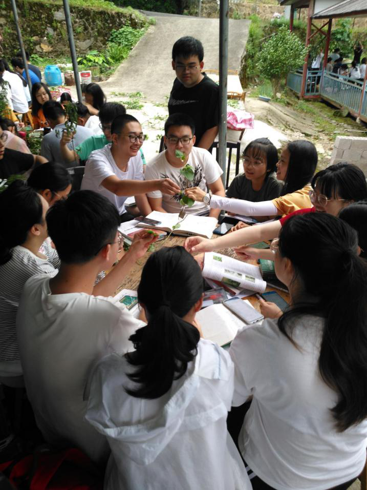 “亲近自然,认识植物,感悟生命”,是《药用植物学》课程野外实习的主旨。野外实习让书本上的植物鲜活起来,理论与实际紧密结合的学习方式极大的激发了学生的学习热情。2018级中药资源与开发班张宇轩说:“我感叹大自然的神奇使这些植物各具姿态,生机勃勃,也深刻认识到“纸上得来终觉浅,绝知此事要躬行”的道理”。另外,置身于大自然中,感受祖国的大好河山及丰富的药物资源,更易激荡起学生们的爱国之情,有学生发出“居山数日,无不敢如世外桃源者。嗟乎,今日之华夏之于他国不亦如桃源之于捕鱼人?天下扰扰,然唯独四海浪静,歌舞升平。此非中共之力挽狂澜乎?虽居深山,然四海皆在深山,见山静而之四海平。念此涕流,感激中央之力挽狂澜,自幸身在华夏”的感叹。野外实习还强化了学生们的团队精神及创新意识,是十分合适的融入思政教育的教学环节。