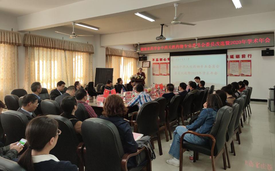 2020年11月14日下午,由湖南省药学会中药天然药物专业委员会和湖南中医药大学中药学一流学科、药学一流学科联合主办的“湖南省药学会中药天然药物专业委员会委员改选暨2020年学术年会”在湖南中医药大学含浦校区药学院隆重举行。来自高等医药院校及研究机构、药政药检系统、医疗机构、生产、经营企业的80多名委员代表参加了会议。