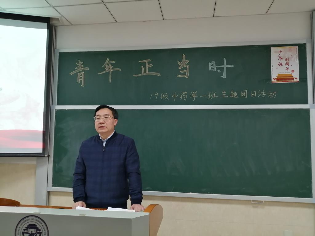 2020年11月25日星期三下午三点,校(院)党委书记秦裕辉来到第三教学楼3305教室,参加其联系指导的2019中药学一班团支部“青年正当时”主题团日活动。秦书记的到来,让现场气氛变得沸腾起来。