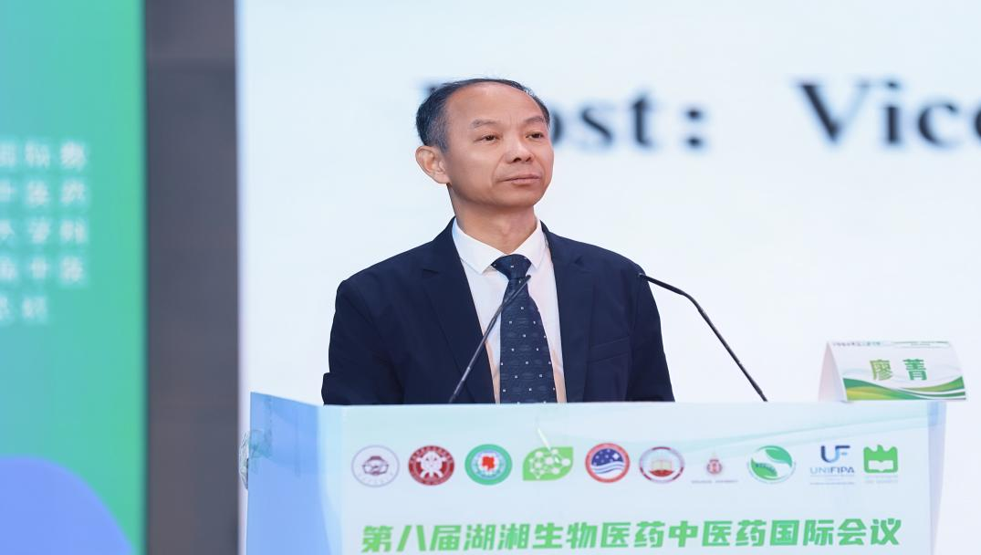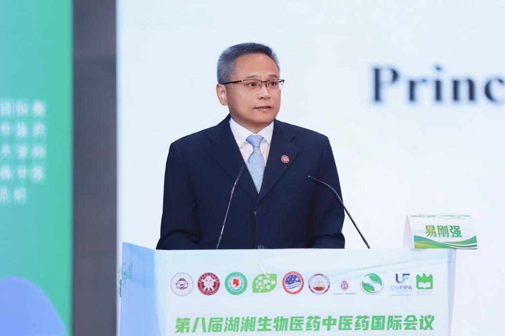 易刚强代表学校对莅临的领导、嘉宾表示热烈欢迎与诚挚感谢。他指出,在各方共同努力下,已成功举办七届的湖湘生物医药中医药国际会议,搭建起一个跨国界的交流平台,成为推动生物医药互鉴、民生福祉共享与人类卫生健康共同体建设的重要载体,为世界传统医药事业的发展与繁荣作出了积极贡献。他强调,在全球化和健康挑战日益复杂的背景下,我们既要珍视并发扬传统中医药的宝贵智慧,也要秉持开放精神,推动中医药与时俱进。必须紧抓科技创新,促进中医药与现代科学深度融合,用现代技术阐释和提升其疗效与机理,让古老的中医药焕发新的活力。同时,要坚持国际合作,以全球视野推动中医药现代化、国际化与产业化,使“中国处方”和“中国智慧”凭借实力与疗效,更好地造福人类、走向世界。