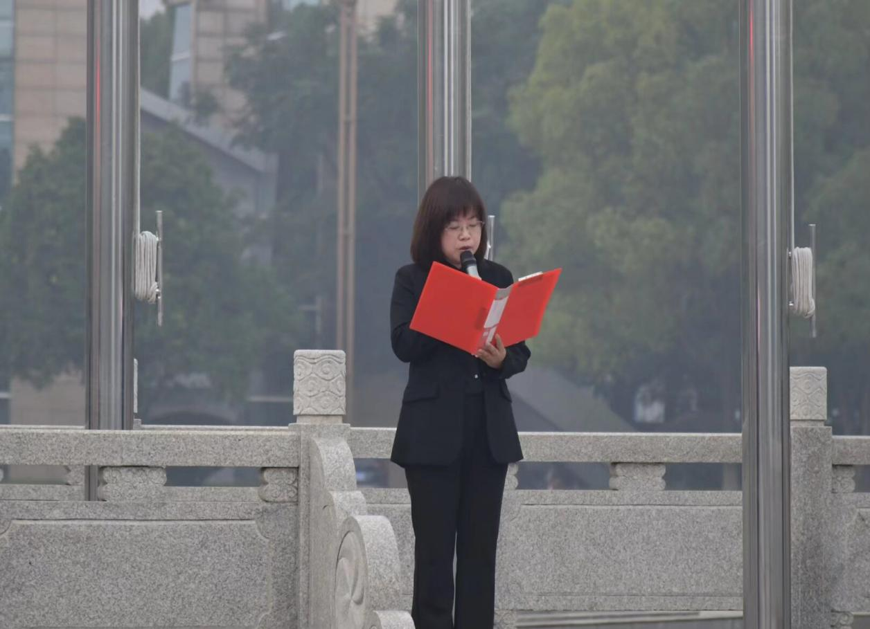 学院党委书记张熙进行国旗下讲话。她强调回溯历史、致敬英烈,指出历史是民族的根基,先烈是民族的脊梁,和平是发展的基石。立足当下、展望未来,她对同学们寄予三点希望:一是要筑牢信仰之基,传承家国情怀;二是要锤炼立业之能,勇担时代重任;三是要磨砺坚韧之志,永葆奋斗激情。