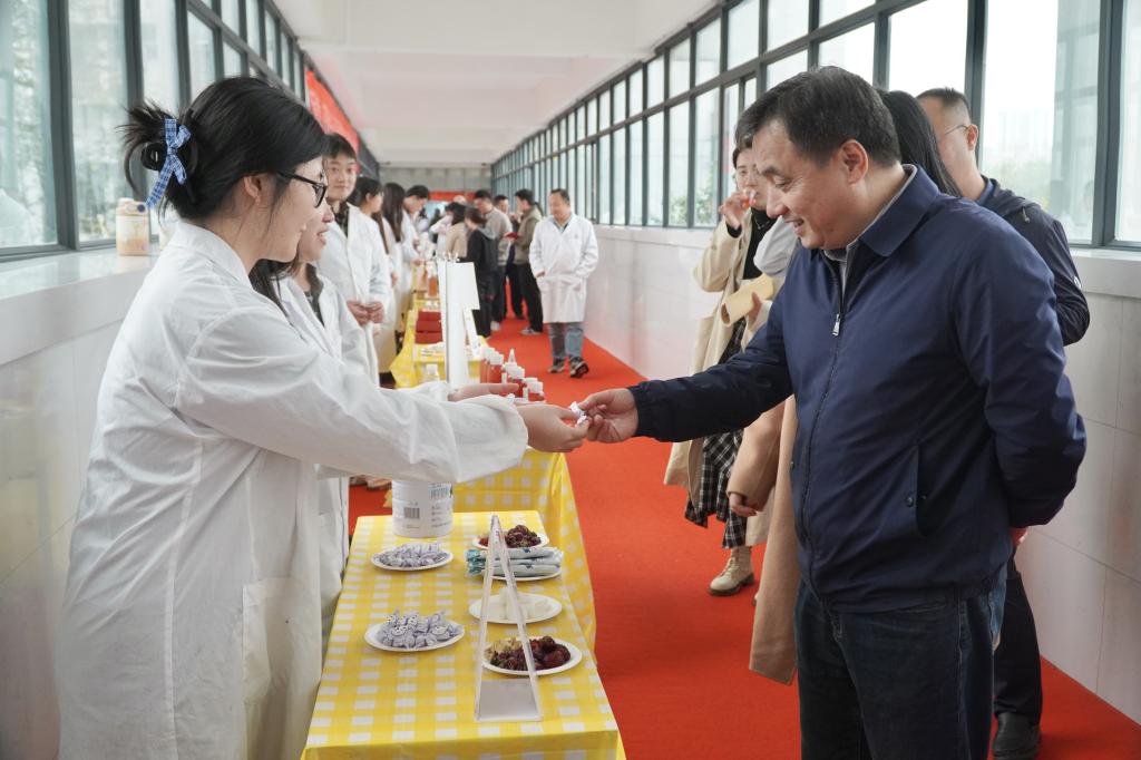 活动现场,我院15组学生代表依次汇报展示自研作品,其中涵盖功能性茶饮、健康零食、养生糕点等多品类创新成果。评审专家从创新性、科学性、市场潜力等维度综合评判,最终评选出优秀作品并举行颁奖仪式。每一件作品都凝聚着学生们“从教室到市场”的创新探索,展现了00后大学生的专业能力与敏锐的创业洞察力。
