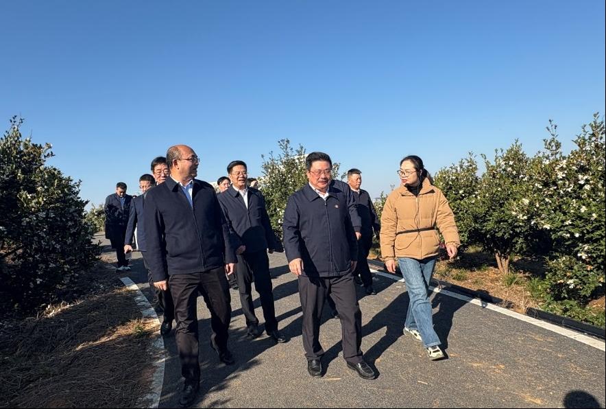 2025年11月19日,我校党委书记戴爱国率调研组赴邵阳县验收我院与邵阳县人民政府共建的“党建引领油茶林下中药材及芳香植物试种科研基地”的阶段性成果,邵阳市委副书记尚生龙、邵阳县委书记袁胜良、邵阳县县长周玉祥陪同调研。