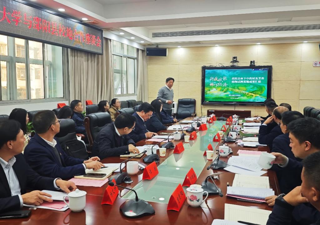 戴爱国对我院迅速响应校地战略合作部署,积极深化与邵阳县人民政府的各项合作表示高度认可,认为我院“党建引领油茶林下中药材及芳香植物试种科研基地”建设取得突破性进展,收获了丰硕成果。他强调,要遵循“一县一策、一县一品、一县一种”原则,持续优化资源配置、优化特色定位、优化品种筛选,分步推进中药材GAP基地、种苗繁育基地建设;同时优化加工与产业链条,争取携手将邵阳县中医药产业打造为示范样板与标杆范式。