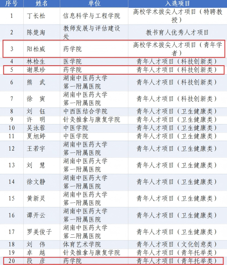 近年来,学院积极响应学校人才强校战略,坚持“引育并重”,既注重学术引领,又强调教学传承。此次,我院共有3位优秀人才成功入选2025年度湖南省“芙蓉计划”,分别在高校学术拔尖人才、青年人才科技创新类及青年托举类项目中获得立项,这是学院在加强高水平师资体系建设、推动中医药传承创新进程中迈出的坚实一步。我院将以此为契机,持续优化人才发展环境,充分激发人才创新活力,为药学事业高质量发展筑牢人才支撑。