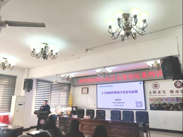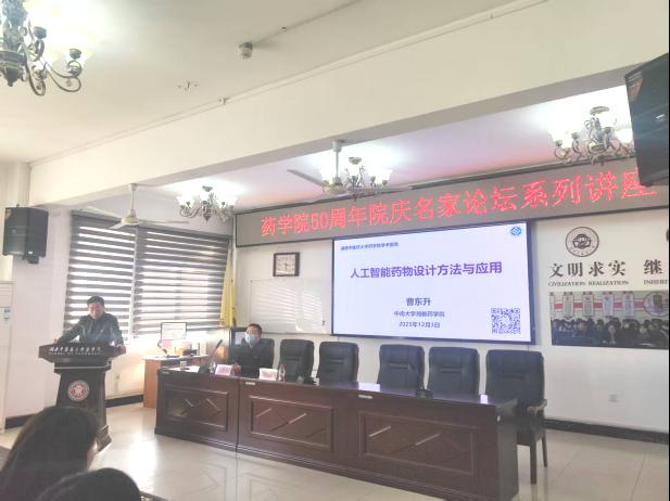 2025年12月3日下午,药学院在闻道楼4楼428会议室成功举办了“50周年院庆名家论坛系列讲座”第五场,讲座主题为“人工智能驱动的药物设计与应用研究”。本次讲座由药学院院长王炜教授主持,特邀中南大学湘雅药学院副院长、人工智能药学交叉研究中心主任曹东升教授担任主讲人。