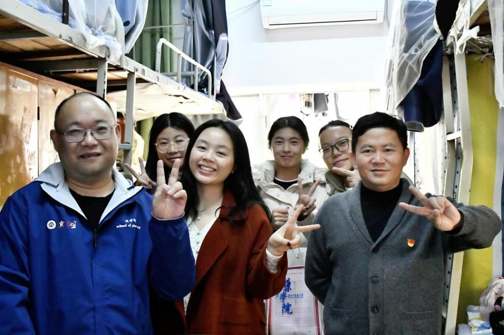 冬阳暖照,杏园馨香。为切实关怀考研学子,助力同学们以饱满状态迎战考试,12月17日下午,湖南中医药大学药学院组织开展考研学子寝室暖心慰问活动。学校副校长廖菁及学院书记张熙、副书记方圆、毕业生辅导员深入学生寝室,为即将奔赴考场的药学院2022级考研学子送上暖心关怀与诚挚祝福。