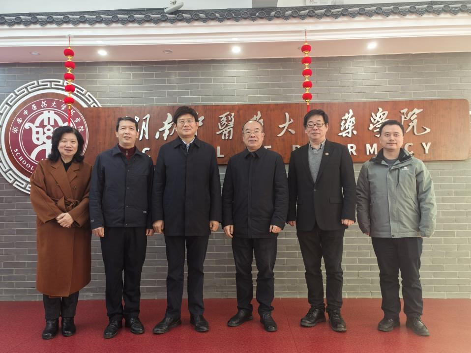 1月28日,省药品监督管理局副局长覃永忠一行莅临药学院调研指导,大学副校长刘富林、药学院班子成员陪同座谈交流。