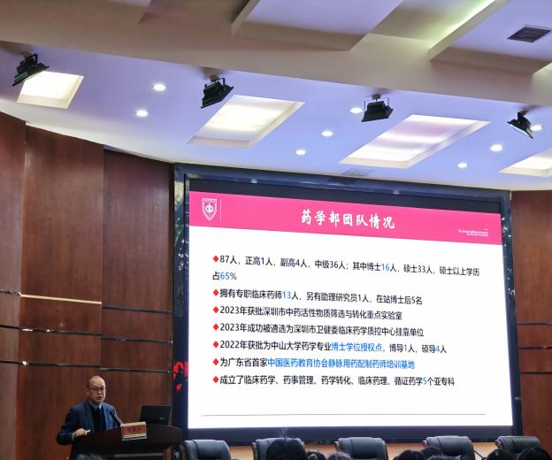 在讲座环节,周本杰以《医院药学团队及学科建设思考与探索》为题,结合自身三十余年临床药学实践经验,系统阐述了医院药学团队建设路径与学科发展方向。他提出新时代药学团队需以“临床需求为导向、学科交叉为支撑、创新转化为目标”,通过 “学术引领 + 实践驱动” 的模式,推动药学服务从 “以药品为中心” 向 “以患者为中心” 转型,其团队构建的 “临床 - 科研 - 转化” 一体化药学服务体系,为医院药学学科建设提供了可借鉴的经验。