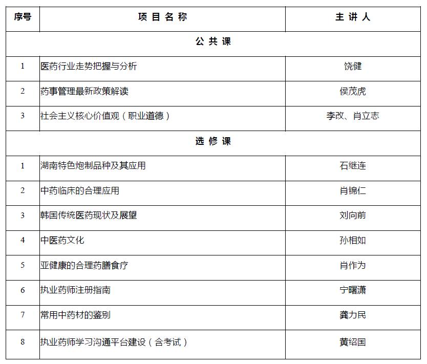 根据国家食品药品监督管理局《执业药师继续教育管理暂行办法〔2003〕298号》相关规定与《2017年度全国执业药师继续教育项目的通知》精神,按照湖南省食品药品监督管理局的统一部署,本培训中心承担湖南省境内的医药工业类、零售药店、教育、科研系统、药监、药检系统及医药公司等执业药师继续教育培训工作,经考核合格后授予国家一类学分15分,具体事宜通知如下: