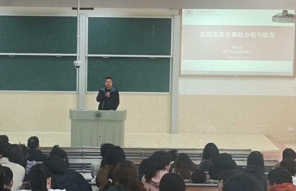 11月28日,我院于第三教学楼召开药学院实验室安全培训会议。校资产与实验管理处副处长尹抗抗、实验室管理科科长李玲、药学院全体研究生导师及研究生参加了本次培训。会议由副院长童巧珍主持。