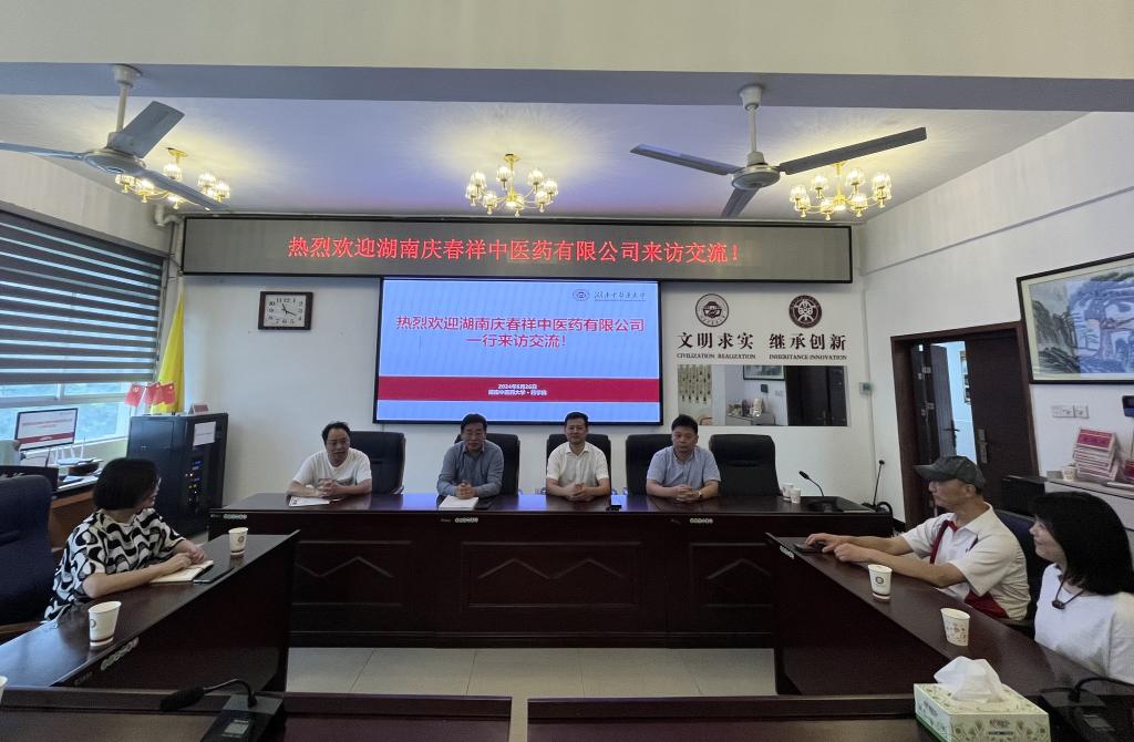 6月26日,我院与湖南庆春祥中医药有限公司开展产学研合作交流会。学院院长王炜,湖南庆春祥中医药有限公司董事长蔡晓卫、质量部部长伍孝容出席会议。