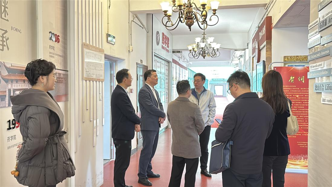 在王炜的陪同下,黎珊一行参观了学院文化长廊。王炜对岳阳市中医院一行的到来表示热烈欢迎,并介绍了我院发展沿革、师资力量及近年来在持续推动中医药产业发展方面所做的工作。他表示,岳阳市中医院医院作为大学附属医院,是我院药学人才培养、就业的重要基地,希望双方能够以此次交流为契机,共建更紧密、更深入的合作关系。